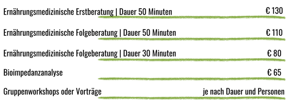 Die gesetzlichen Gesundheitskassen in Österreich sehen leider keine Rückerstattung des Honorars für Diät- und Ernährungsberatungen vor.